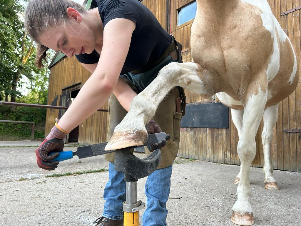 Hufbearbeitung habe ich für mein eigenes Pferd gelernt, das immer problematische Hufe hatte. Das hat mir so großen Spaß gemacht, dass ich es zu meinem Nebenjob gemacht habe und mich immer weiter fortbilde. Hauptberuflich arbeite ich als freiberufliche Autorin für regionale Medien und Pferdefachmagazine.