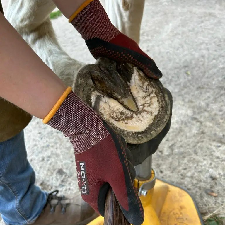 Zum eigenen Schutz behalte ich mir vor, die Behandlung von Pferden abzulehnen oder abzubrechen, die sich aggressiv, panisch oder distanzlos verhalten. Wenn du ein Pferd hast, das Schwierigkeiten mit der Hufbearbeitung hat, arbeite ich gerne mit deinem Trainer zusammen, um das Problem gemeinsam zu lösen.