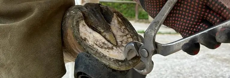 Die Weiße Linie im Pferdehuf hat es in der nass-kalten Jahreszeit besonders schwer. Die Feuchtigkeit zieht in das weiche Horn ein, beim Hufeauskratzen entstehen tiefe Rillen rund um die Sohle. Diese Bedingungen fördern einen Fäulnisprozess in der Weißen Linie: die White Line Disease. Die Weiße Linie des linken Hufs ist schwarz und hat eine tiefe… Weiterlesen Hufkrankheit: White Line Disease
