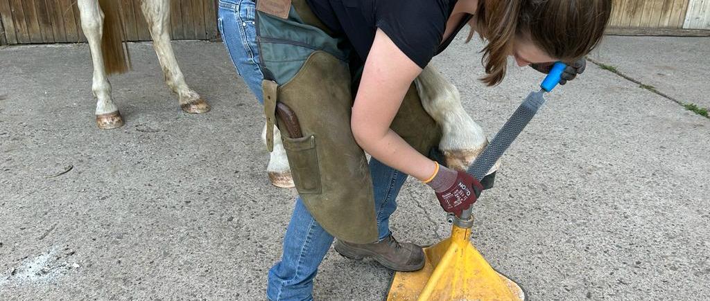 „Ich bin sehr dankbar das Kim sich so verständnisvoll um die Hufpflege meiner „alten“ Dame kümmert. Okie ist eine 24 jährige QH-Stute mit Spat und einer langen Hufrollen-Geschichte. Auch an schlechten Tagen bringt Kim die Ruhe, die Zeit und das Verständnis mit wenn die Knochen weh tun und alles etwas länger dauert. Die Hufe entwickeln sich prima und wir sind rundum zufrieden!“